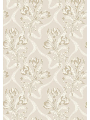 Jugendbukett tapet fra Borås - Jugendbukett er et stormønstret tapet i klassisk jugendstil, datert til begynnelsen av forrige århundre, sannsynligvis en gang mellom 1900-1910. Rett rundt århundreskiftet endret stilidealet seg fra mørke, tunge og mer svulstige til lysere, luftigere uttrykk. Naturen var en viktig inspirasjonskilde, noe vi også ser i dette blomstertapetet med grasiøse blomsterbuketter og mykt bølgende former som binder helheten sammen.