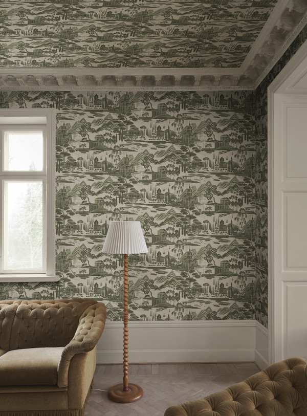 Lake Como tapet fra Sandberg - Opplev den rolige sjarmen til Comosjøen med denne toileen som viser det nydelige italienske landskapet med naturskjønne fjell og ikonisk arkitektur. Designet av Karolina Kroon.