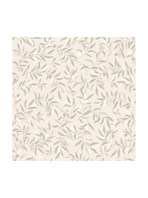 Olivia tapet fra Sandberg - Tapetet bringer en middelhavsstemning med sine slyngende olivengreiner og livlige blader. Designet av Sara Bergqvist.