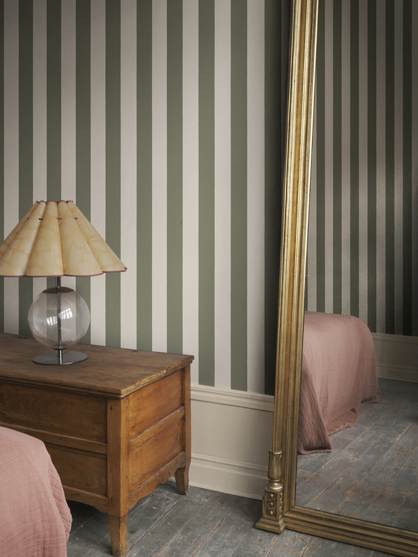 Sam tapet fra Sandberg - Tapetet har tidløse striper i varme fargetoner som tilfører et snev av søreuropeisk eleganse til ethvert rom. Designet av Studio Sandberg.